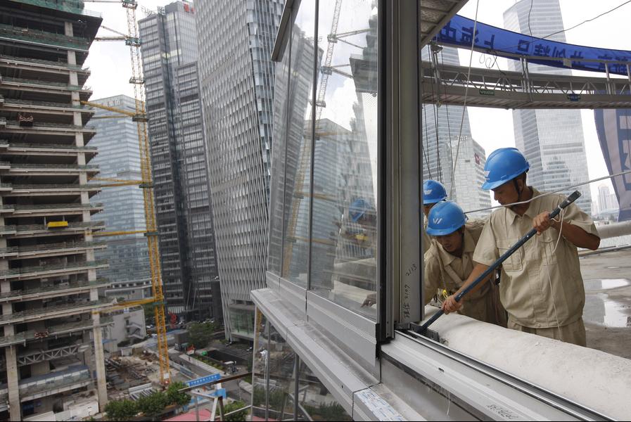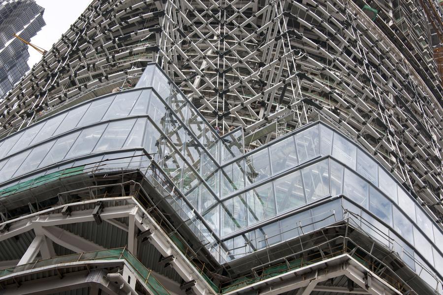 Installation of the glass curtain begins on Shanghai Tower.
