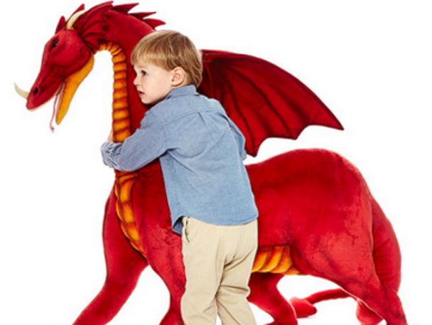 "Go on a magical journey with this 3.6-foot ride-on dragon" made in the U.S. from toy maker Hansa, states Moda Operandi.