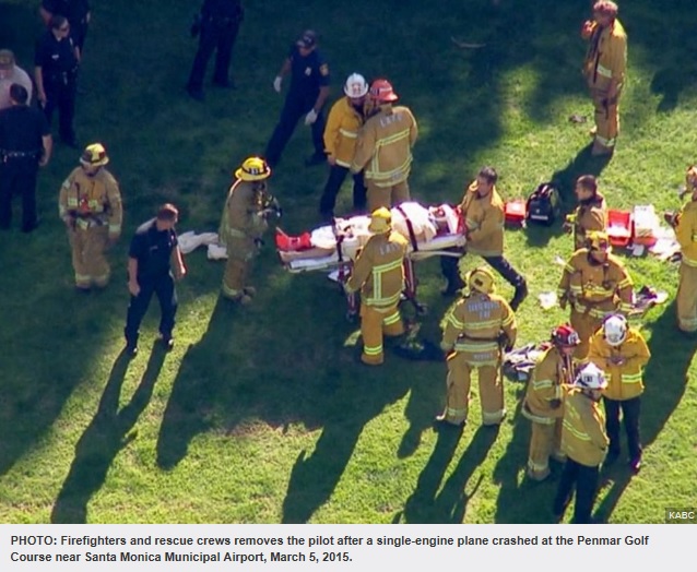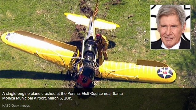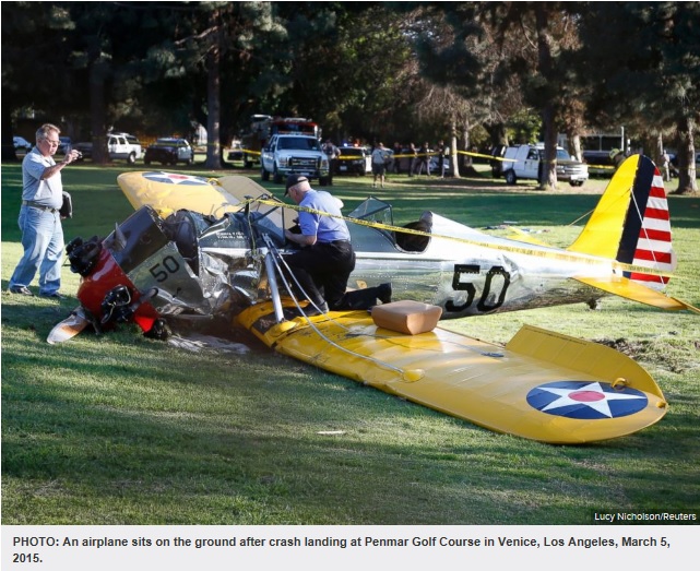 Ford, 72, was forced to make an emergency landing at Penmar Golf Course, just west of Santa Monica Municipal Airport, at 2:20 p.m. PST after the engine of the Ryan ST3KR plane he was flying failed, said NTSB and Los Angeles fire officials. He was taken to a nearby hospital in "fair to moderate" condition, said Patrick Butler with the Los Angeles Fire Department.
