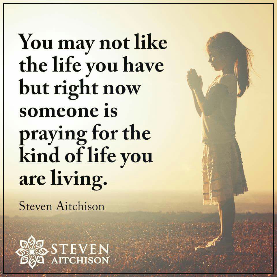 You may not like the life you have but right now someone is praying for the kind of life you are living.