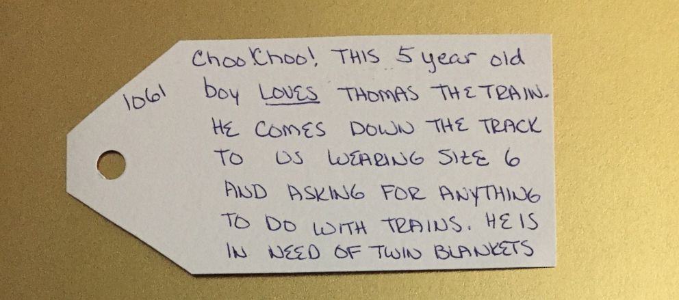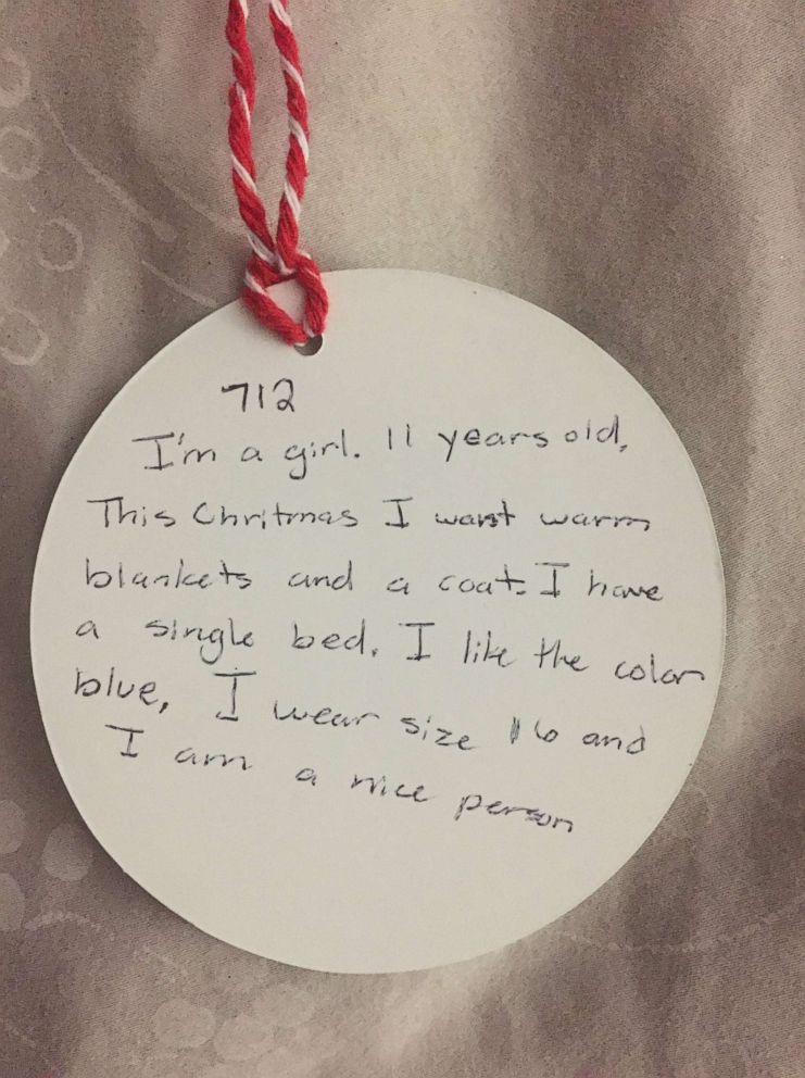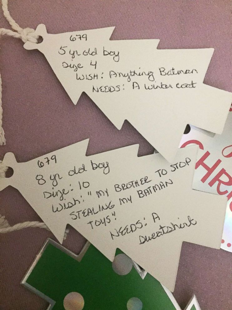 But there are many other children in need. Things of My Very Own, based in Schenectady, New York, shared with ABC News a few of the tags from its holiday gift drive.