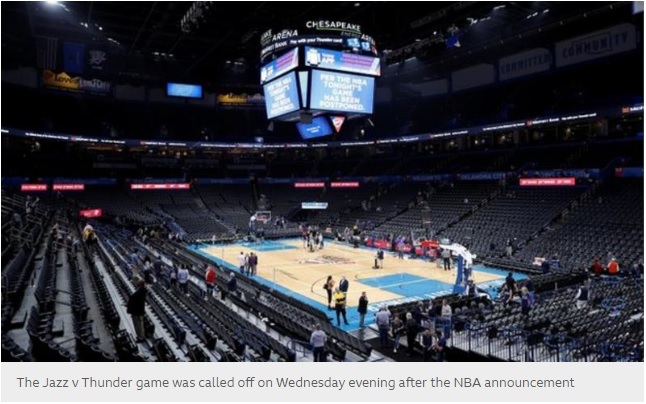The NBA has announced that all matches will be suspended from Thursday until further notice, after a Utah Jazz player tested positive for coronavirus.