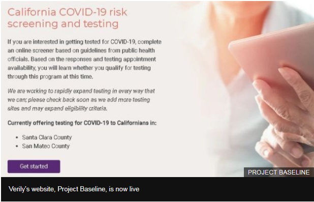The website, Project Baseline, launched today but appears to already have run out of appointments for testing.