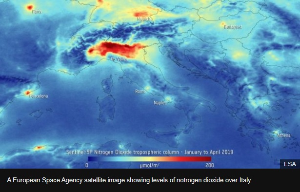 Both China and Northern Italy have also recorded significant falls in nitrogen dioxide, which is related to reduced car journeys and industrial activity. The gas is both a serious air pollutant and a powerful warming chemical.