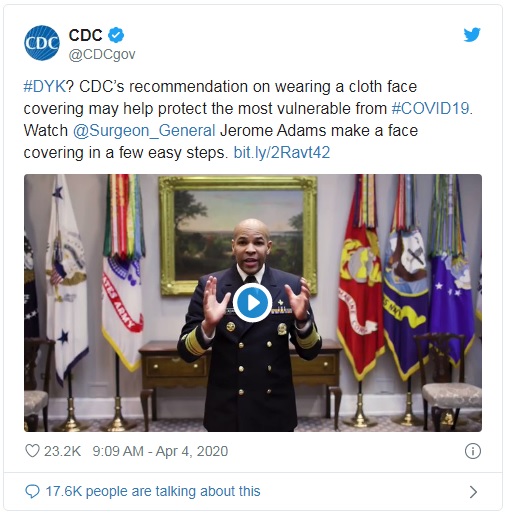 Americans can use "cloth face coverings fashioned from household items or made at home from common materials at low cost," the CDC website says.