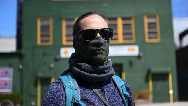 A woman with a face mask walks around the Greenpoint section of Brooklyn, New York, April 4, 2020.