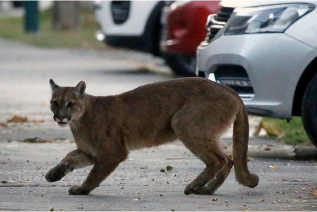 An approximately one-year-old puma roams the streets of Santiago, on March 24, 2020, which according to the Agricultural and Livestock Service came down from the nearby mountains in search of food as fewer people are on the streets due to the coronavirus (COVID-19) pandemic.