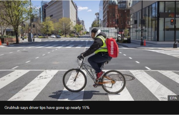 "Diners are being more generous with their tips to drivers, with percent tip across Grubhub and Seamless going up nearly 15%," a spokeswoman for the food delivery service told the BBC.