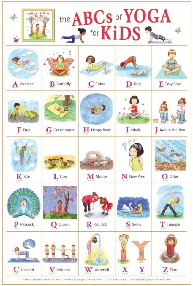 The 26 poses corresponding to letters of the alphabet are based on the book by the same name. Poses have names such as grasshopper, swan and queen and it's easy as A-B-C to work your way through the set with your kids either in the living room or the backyard.