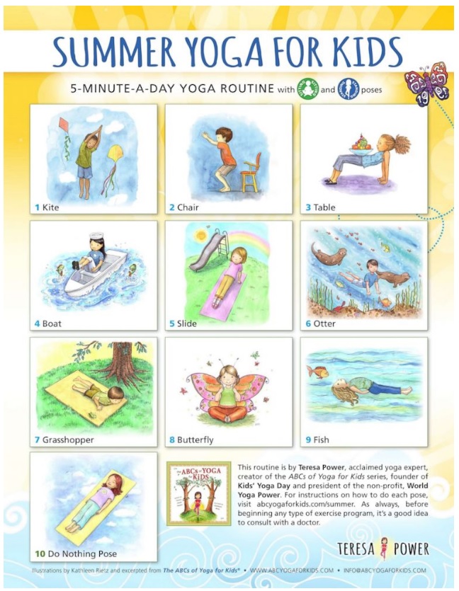 There's also a free download of a five-minute routine made up of 10 poses for kids that's great to keep handy.
