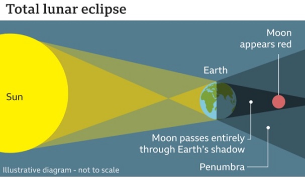 Shortly after 03:30 GMT on Monday, Earth's orbit meant that for several minutes our planet was positioned directly between the Sun and the Moon.