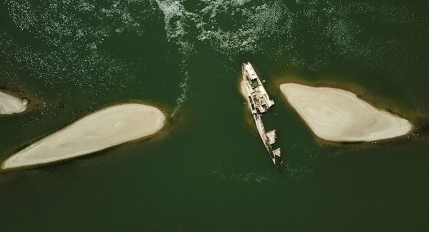 Wreckage of a World War II German warship is seen in the Danube in Prahovo, Serbia Aug. 18, 2022.