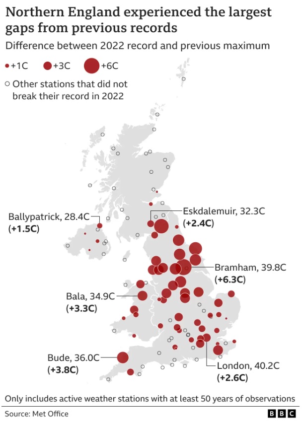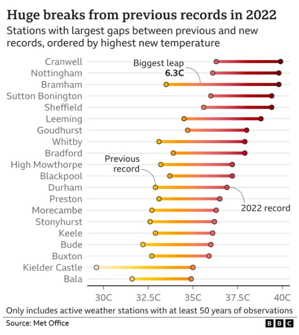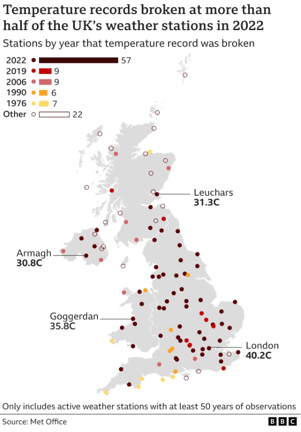 Temperature records broken at more than half of the UK's weather stations in 2022