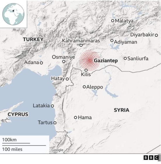 The epicentre of the earthquake that struck Turkey and Syria this morning was near the city of Gaziantep, in south-eastern Turkey.