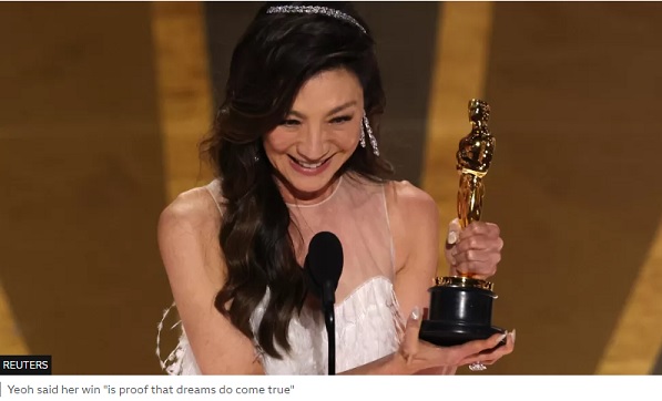Michelle Yeoh has become the first Asian winner of the best actress Oscar, for her performance in Everything Everywhere All at Once.