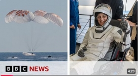 - Astronauts Butch Wilmore and Suni Williams have finally arrived back on Earth after nine months in space. Their SpaceX capsule made a fast and fiery re-entry through the Earth's atmosphere, before four parachutes opened to take them to a gentle spl...